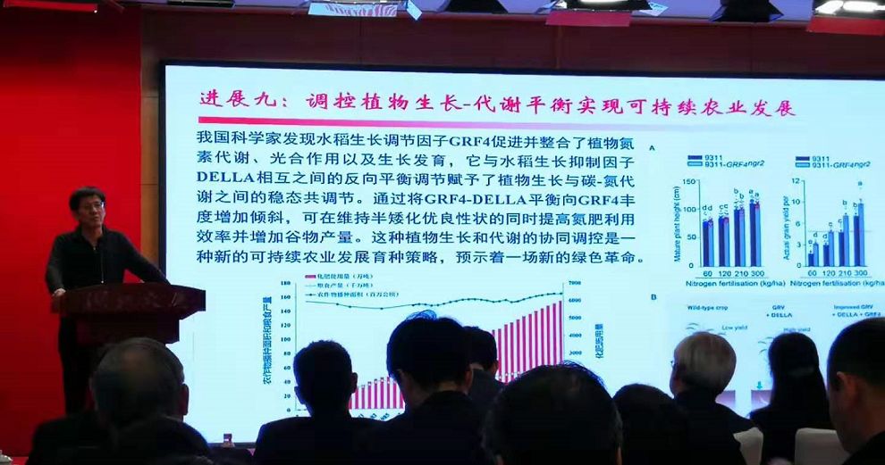 中国科学院遗传与发育生物学研究所傅向东研究组与合作者的研究显示,水稻生长调节因子GRF4和生长抑制因子DELLA相互之间的反向平衡调节赋予了植物生长与碳-氮代谢之间的稳态共调节。GRF4促进并整合了植物氮素代谢、光合作用以及生长发育,而DELLA抑制了这些过程。作为“绿色革命”品种典型特征的DELLA蛋白高水平累积使其获得了半矮化优良农艺性状,但是却伴随着氮肥利用效率降低。通过将GRF4-DELLA平衡向GRF4丰度的增加倾斜,可以在维持半矮化优良性状的同时提高“绿色革命”品种的氮肥利用效率并增加谷物产量。因此,对植物生长和代谢协同调控是未来可持续农业和粮食安全的一种新的育种策略。