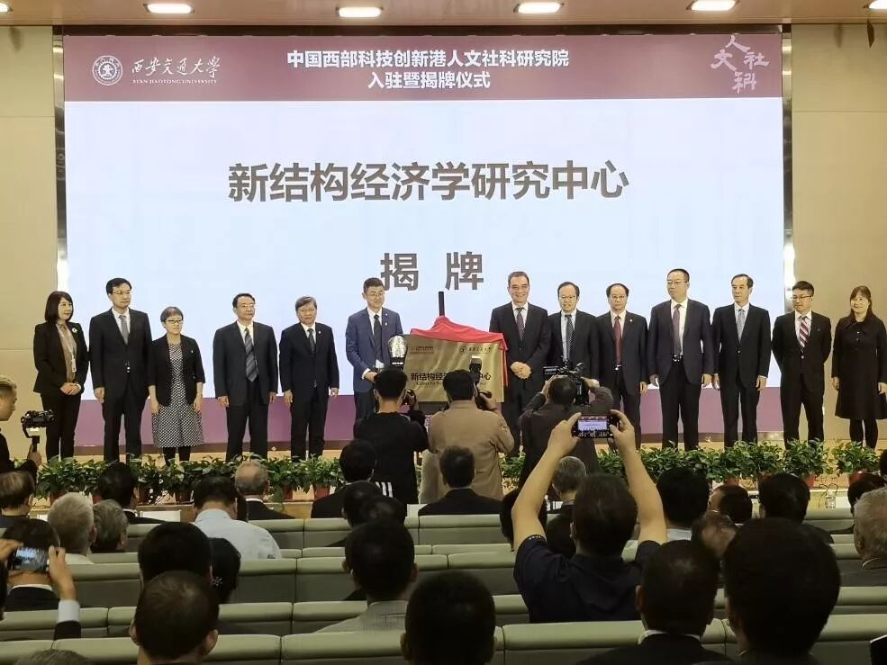 2019年9月18日下午,西安交通大学新结构经济学研究中心举行正式揭牌仪式。由西安交通大学经济与金融学院孙早院长、北京大学新结构经济学研究院林毅夫院长为中心揭牌,西安交通大学校长王树国、北京大学新结构经济学研究院副院长王勇、榆林市人民政府市长李春临、兴业银行首席经济学家鲁政委等嘉宾一起合影。
