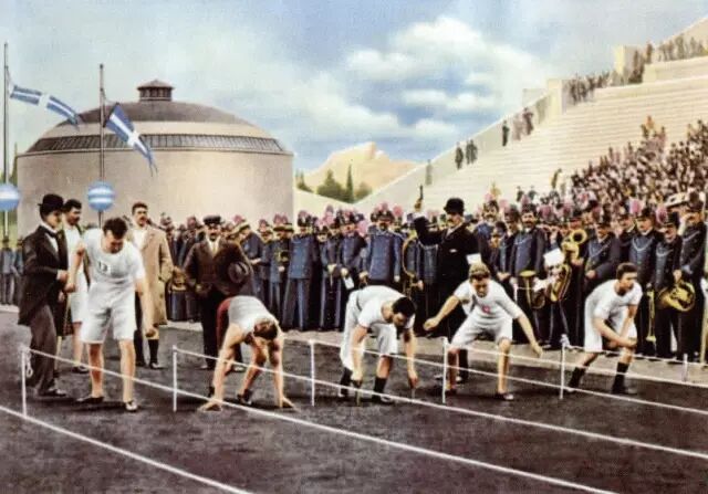 1896年,描绘希腊雅典第一届奥运会100米短跑的插画(《体育神话是如何炼成的》)