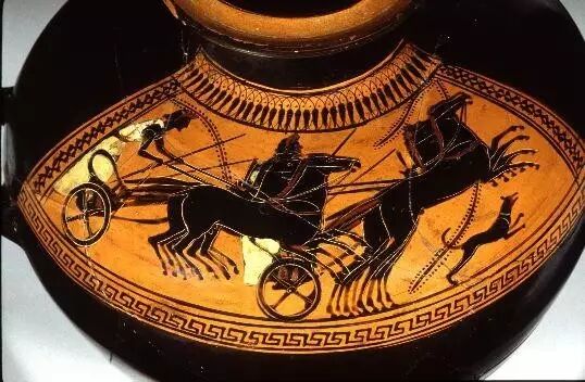 古希腊陶瓶上的战车彩绘