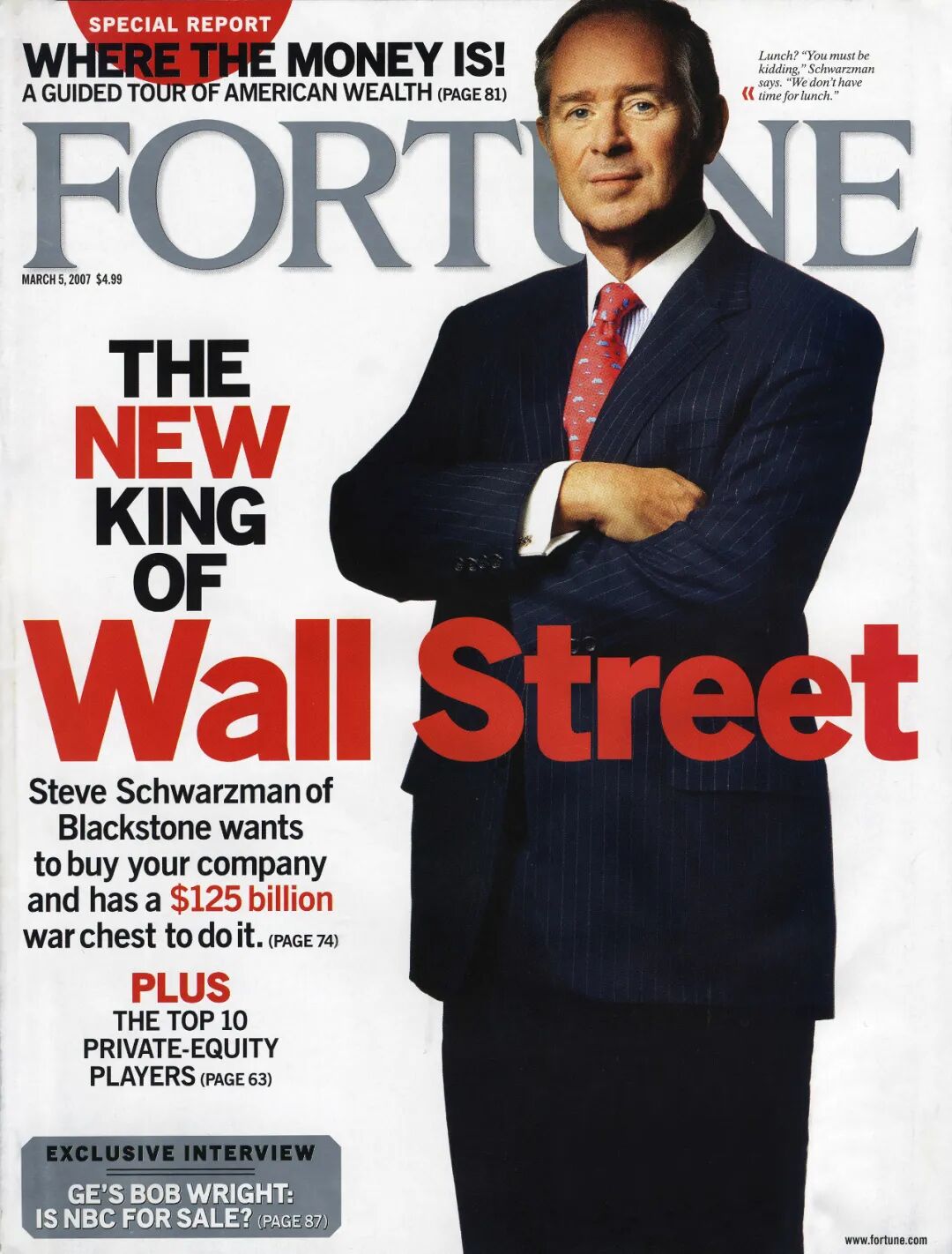 2007年《财富》杂志封面,美国黑石公司创始人苏世民(Stephen Schwarzman)被称为新的“华尔街之王”(图片来源:achievement.org)