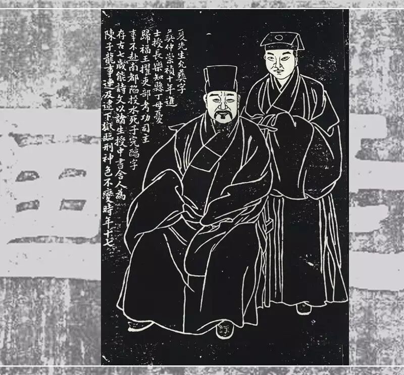 夏氏父子像(《邦彦画像》,上海松江醉白池公园的南廊壁,刻于清光绪十六年)