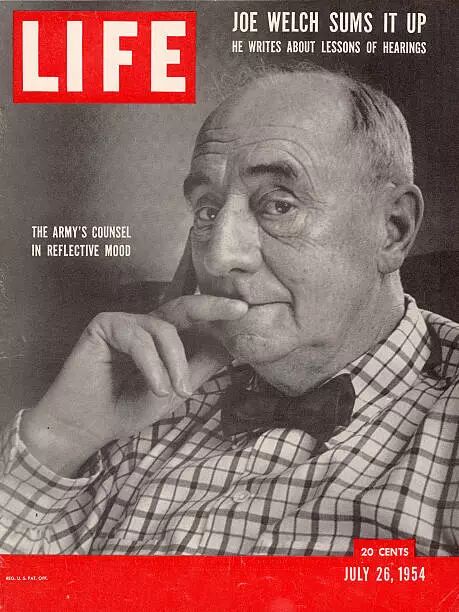 直到一九五四年初,当麦卡锡把他的调查进一步扩大到美国军队中时,他的为所欲为才受到了坚决的挑战。麦卡锡见从国务院挖不出共产党,便到军队中去挖,可当他提出全面调查美国陆军的肃共情况时,陆军部表示反对。在共和党总统艾森豪威尔的命令下,陆军部向国会控告麦卡锡的调查违反了权力制衡的宪法原则,干预了行政部门的事务,要求国会举行调查。在一九五四年举行的“陆军-麦卡锡听证会”上,陆军部公布了麦卡锡的种种越权和违法行为,揭开了麦卡锡调查活动的黑幕。而麦卡锡则施展东拉西扯和哗众取宠的惯用伎俩,并当着全国电视观众的面,滥用参议院的议事程序,刻意干扰听证调查。麦卡锡的胡搅蛮缠早已引起在场的陆军部律师约瑟夫·韦尔奇(Joseph N. Welch)的极度反感。当麦卡锡硬把韦尔奇手下的一位年轻律师曾参加过一个宗教组织的事与陆军中的“颠覆活动”扯在一起的时候,韦尔奇终于忍无可忍,站起来对麦卡锡说道:“参议员先生,让我们不要再继续诋毁这个年轻人了吧!先生,你还有没有良知?难道你到最后连一点起码的良知也没有保留下来吗?”