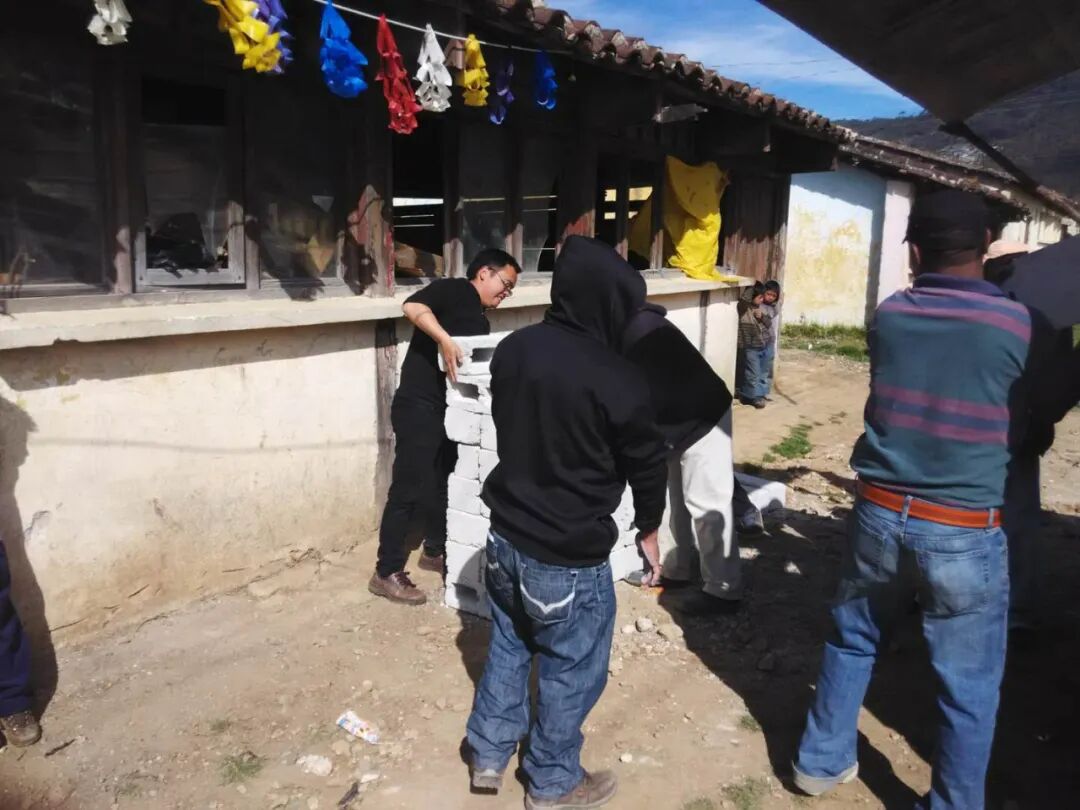 本文作者索飒(黑色上衣者)在墨西哥恰帕斯某印第安村落