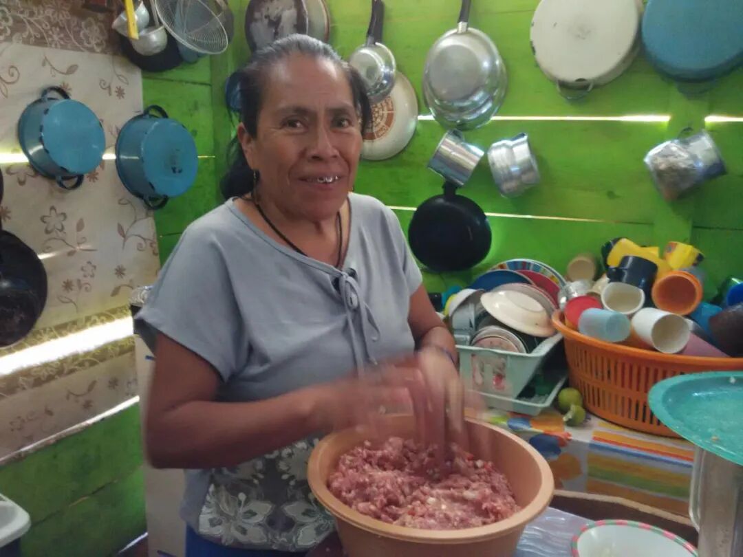 本文作者索飒(居中女性)在墨西哥恰帕斯某印第安村落