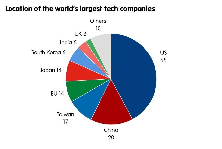 欧洲对外关系委员会发布的《欧洲的数字主权》报告中关于世界科技公司分布的统计图(来源:ecfr.eu)