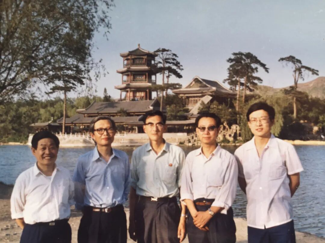 左起:陈宗明,倪鼎夫,诸葛殷同,刘培育,王路(1986年摄于承德)