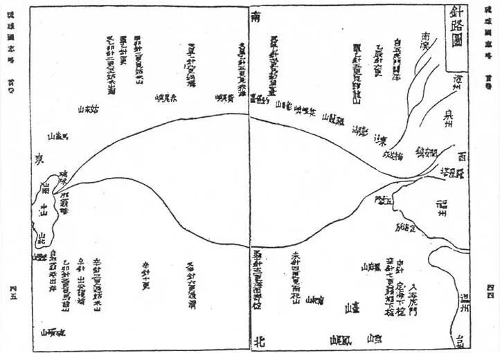 周煌《琉球国志略》绘福州至琉球间往还针路:上航线从福州至琉球,下航线从琉球至福州(图片来源:chiculture.org.hk)