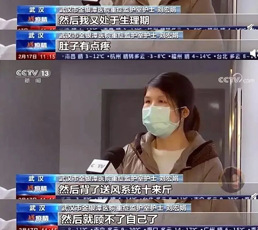 更被网友挖掘出,某媒体采访武汉女护士时,将对方接受采访时候关于生理期的内容进行剪切和“消音”。