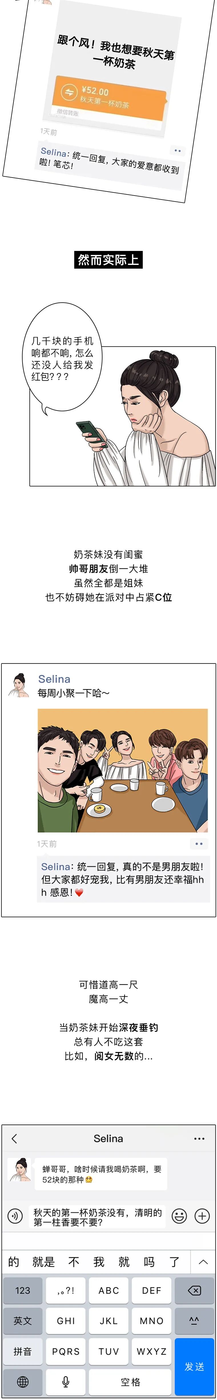 秋天里的第一杯奶茶,不过是渣男渣女们的新一轮钓鱼大赛。而他们的鱼塘,不仅仅是朋友圈 ——