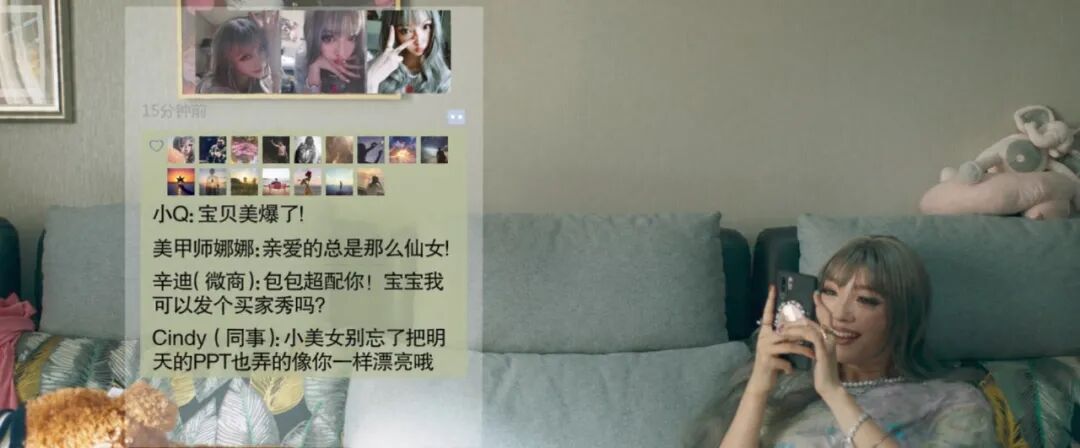 紧接着她开始疯狂的自拍,躺在沙发上,开心的享受来自朋友圈的夸赞。