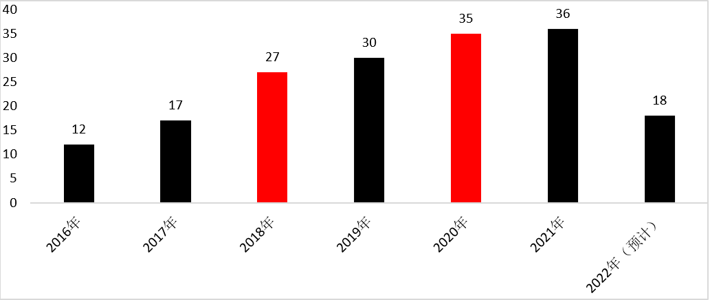 根据国家统计局公布的数据,今年前8个月商品房销售额同比大幅下降28%,而克而瑞统计的数据也显示今年前8个月多数地产企业销售情况不容乐观,若根据目前推测,预计2022年全年千亿地产企业数量将会腰斩,重回20家以下,我们判断应为18家左右。