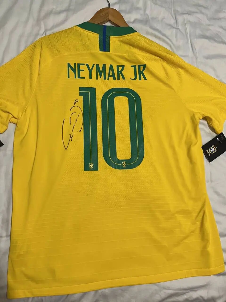 我收藏的内马尔签名球衣和球场上的我。(南方电网广西钦州灵山供电局 刘旭轩)
