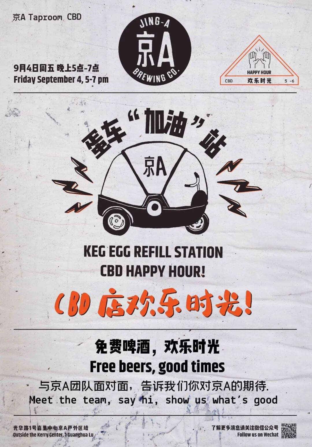 我们的蛋车会停在即将完工的CBD门店室外区域,为大家提供2小时的免费啤酒。我们将带来两款经典啤酒。届时还会赠送有趣的小礼物,并分享京A幕后故事。下班儿后别急着回家,来和我们走一个嘿!