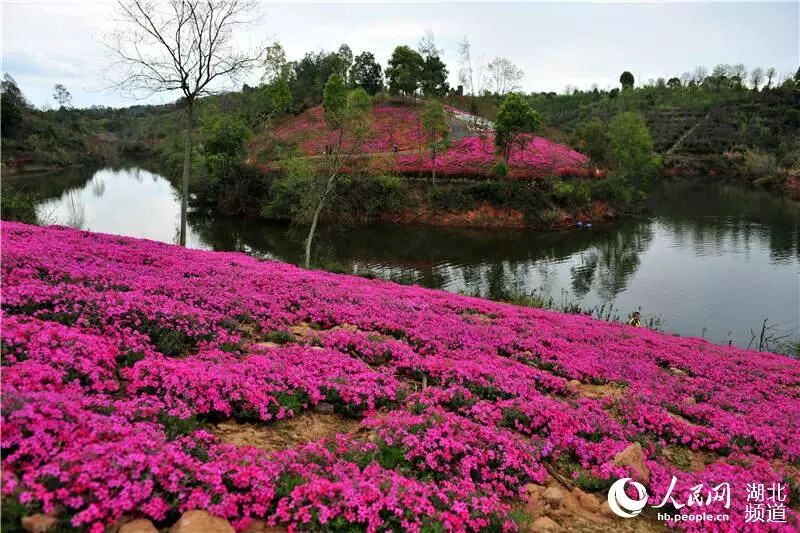 湖北省宜昌市夷陵区鸦鹊岭镇芝樱农庄“花海”基地里的芝樱红花近日竞相绽放。芝樱农庄是夷陵留学加拿大的“海归”蒋昕延毕业后回到家乡于2016年创办。
