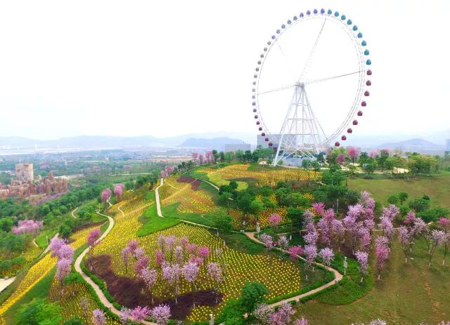 广西柳州市柳东新区一主题公园内的50万只彩色风车日前安装完毕,整个山坡变成“风车花海”。