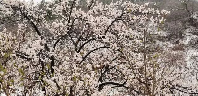 2018年4月5日,雪后的北京出现“山花映雪”奇观。