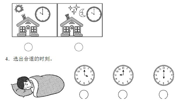 3、认识整时:分针指向12,时针指向几就是几时;电子表上,“:”的右边是“00”时表示整时,“:”的左边是几就是几时。