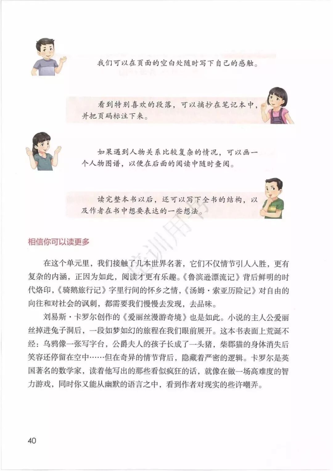 陈先云先生在 2016 年全国统编教材培训会上特别强调:统编教材三至六年级的课文由原来的三十几篇减少到二十几篇,但是阅读量却增加了,其增加的地方就在课外阅读上,具体说就在“和大人一起读”和“快乐读书吧”。