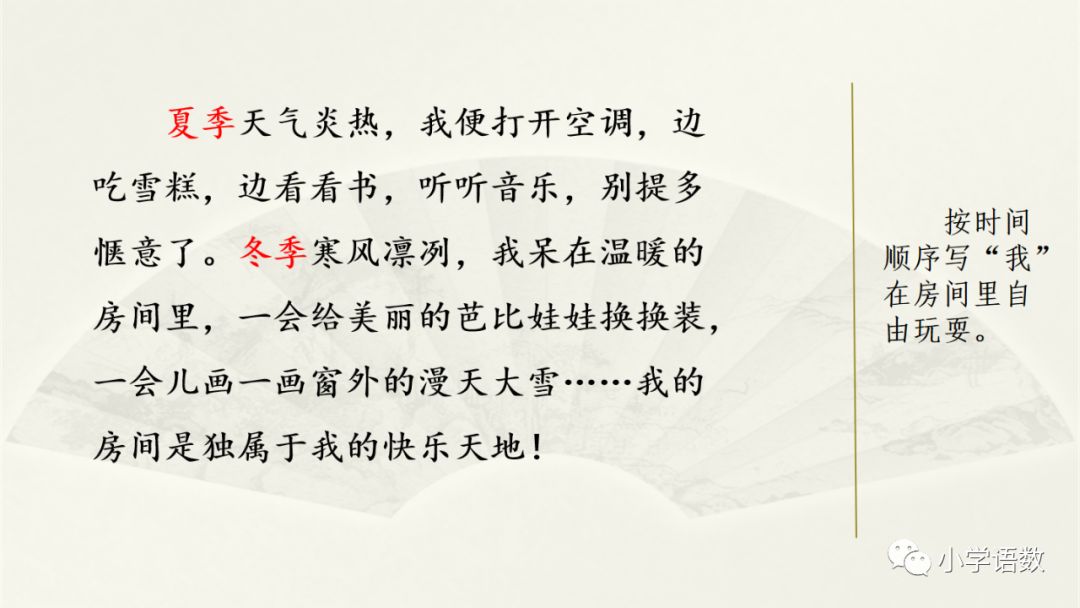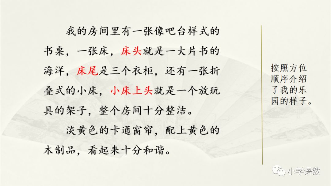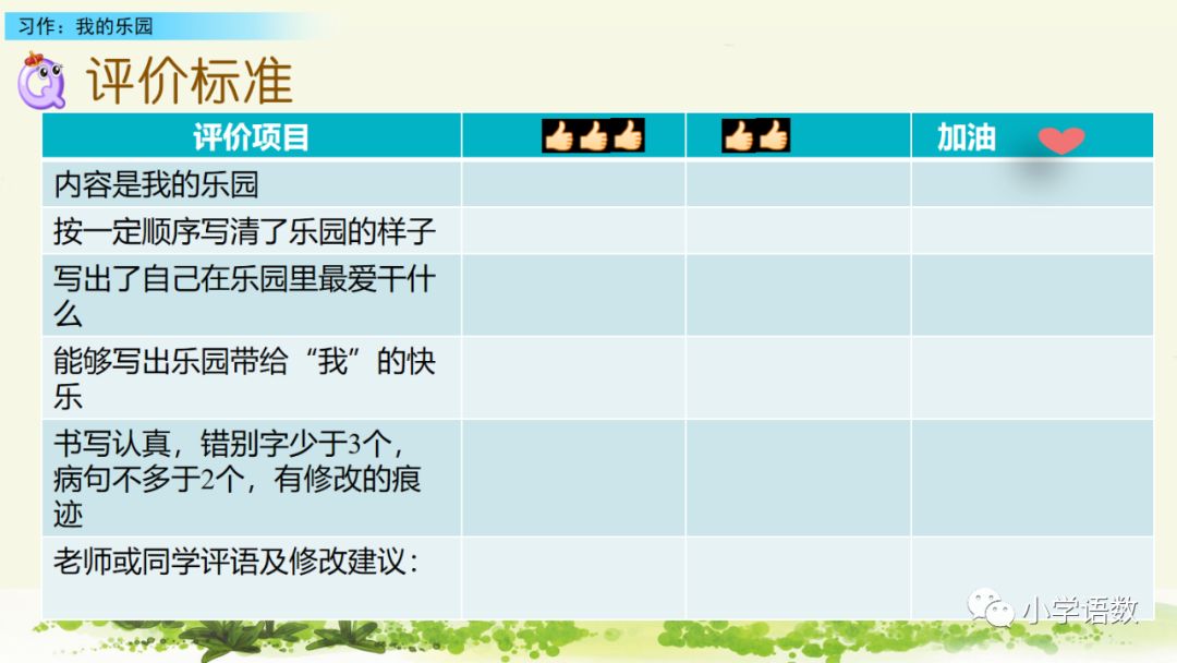 点评:这篇文章描写了我理想中的乐园——外婆家的后山,乐园中的稻谷和果树给我留下了深刻的印象。文中描绘的乐园清新活泼,欢快明朗,字里行间跳动着的童心,使文章也有了生命力。我的家乡是豫东平原上的一个美丽的乡村,村庄东头有一个小山岗。小山岗南北绵延几公里,就像一条长龙,匍匐在家乡的原野上。山岗上面栽满了杏树,每到初夏杏子成熟的时候,满树黄澄澄的杏子,总会吸引来很多小朋友。大一点儿的爬到树上摘杏子吃,小一点儿的待在树下,看着树上的小朋友吃得津津有味,馋得直流口水,他们便会朝树上的小朋友大声地喊:“给我摘一个,给我摘一个。”而树上的小朋友却总是故意刁难树下的小朋友,边吃边说:“就是不给你摘,就是不给你吃。”气得树下的小朋友直跺脚,嘴里直嘟囔:“你真坏,你真坏。”到了暑假,山岗上就更热闹了!孩子们吃过晚饭,在父母的带领下,一只手拿着瓶子,一只手拿着手电筒,三个一群,五个一伙,兴高采烈地去捉蚂蚱。你看吧,树林里,到处是人影,到处是灯光;你听吧,人影处,到处是笑声,到处是孩子们的叫喊声。你总能听到:“妈妈,我捉到一个!”“爸爸,这里有一个爬蚱!”家乡的小山岗,虽然很平凡,但它却是孩子们的乐园。怎么样?听了我的介绍,你一定喜欢上了这个小山岗吧!我家的院子非常美丽。我最喜欢的两棵树,在院子的西南方。一棵是玉兰树,一棵是樱花树。三月是它们最美丽的季节。樱花开了,粉若云霞;玉兰抽叶了,碧绿如翡翠。它们的枝条互相交织在一起,大概在院子里相对得久了,成了好朋友,惺惺相惜吧?从远处看,就像两团巨大的棉花糖。(微信公众号:小学语数)过了几天,樱花落了,与之前的玉兰花瓣混杂在一起,像铺上了一层花色地毯,走上去“沙沙”响,很好听。院子的东南角是个大池塘,池水清澈见底,底下铺着一层细沙和一些小石头。对了,池底还有几块砖。它们向来是“微生物”的乐园。掀开砖一看,上面有些不知名的小蠕虫在爬动。一条金鱼和几条鲫鱼在池子里无忧无虑地游动,从来不管今夕是何夕。它们互相追逐玩耍,吐着泡泡,一副不问人间俗世的模样。池子里还曾养过一只大河蚌呢!它是棕黑色的,闪着蓝光。对于它的到来,我曾经非常欣喜,天天来看它。可它太娇气,不久就一命呜呼了。为此,我还伤心了很久呢!院子的西北边有一棵枇杷树。它每年的四月会结果。每到四月时,爸爸经常爬上梯子,剪下果子递给我,而我把它放入妈妈拎的小篮子里。有时候嘴馋了,我还会趁着空档儿,剥开外皮塞进嘴里,酸酸甜甜,满嘴生津,自己家种的果树果然好吃。院子的东北边,就是关狗的地方了。两只金毛犬正在换毛期,狗毛四处乱飞,让人不胜其扰。这里还有一个破布袋,是我扔给它们当玩具的。结果那个袋子的碎片被它们拖来拖去,整个院子里随处可见碎片,真是太不讲卫生了。更让人生气的是,这两只“二货”还乱咬花草,妈妈辛辛苦苦种下的花草大部分都难逃他们的魔爪!妈妈恨恨地责骂它们,想把它们送人,被我苦苦哀求后才勉为其难地留下了这两只狗狗。正值春天,经常能看到蝴蝶在院子里飞。有一种蝴蝶的颜色是淡紫色,又有点儿蓝。当它们把翅膀闭合上时,就仿佛出现了一只大眼睛。还有一种蝴蝶,是黄色的,带着金粉,在阳光下极为耀眼。蛐蛐快活地叫,蝴蝶随意地飞,鱼儿欢快地游,狗狗悠闲地走。怎么样?我家的这个院子美吗?偷偷地告诉你,我家有个巧手妈妈,所有的一切都是妈妈亲手布置的哦!我家的院子给了我无穷无尽的快乐,你喜欢我家的院子吗?也许有人会喜欢清澈见底的小河,有人会喜欢欢声笑语的广场,还有人喜欢生机勃勃的菜园……而我,却喜欢奶奶房后的小树林。春天,小草露出脑袋,花儿绽开笑脸。这让小树林充满了乐趣。小鸟在树上唱着悦耳的歌,蝴蝶在花丛中翩翩起舞,蝉在树上高兴地唱着歌,仿佛它是一位很好的音乐家。这里芳草鲜美、落英缤纷,真是风景如画。如果说春天是一组欢快的四季曲,那么阳光便是灵动跳跃的节奏。春天,绿色的使者,希望的象征;阳光,温柔的使者,光明的向往,有了春天,繁花似锦,心情舒畅。我爱你!小树林!夏天,炎热的象征。这时候,小树林里的“打伞”就起了作用。它可以遮挡炎热的阳光,又可以在这里下棋、打牌、玩麻将……夏天,绿树成荫,它们好似一把把绿色的大伞,支撑着天和地。我爱你!小树林!秋姑娘就这样到来了。这时候,爷爷和奶奶种的梨树和苹果树的果实终于“诞生”了。它们个个都向我招手,好像在跟我说:“快来摘我吧!快来摘我吧!”就在这个果实累累的季节里。怎能没有小动物来偷吃呢?我爱你!小树林!冬天,银装素裹,白雪茫茫。雪花就如一只只白蝴蝶在天中翩翩起舞。而我呢?就在这个“天堂”里翻滚、跑来跑去、堆雪娃娃。大多的树木都己经脱去了绿装,而松树却翠绿坚强地“站”在这里。我爱你!小树林!综合整理:小学语数(转载请备注出处)