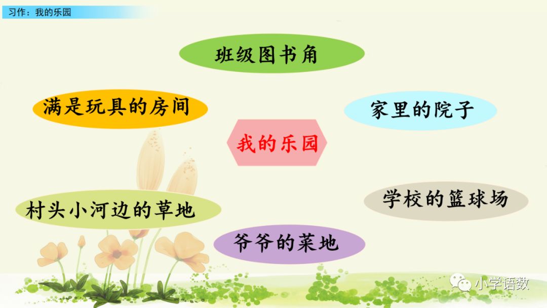 中间:按顺序,用修辞描写乐园的布局方位、环境……并举具体事例说明为什么这个地方成了我的乐园,我在乐园里都会做些什么,有哪些回忆与乐趣;