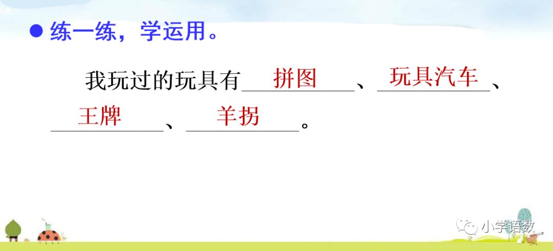 这次词语是我们常见的一些玩具,我们可以在认识了解这些玩具的同时认识这些汉字。