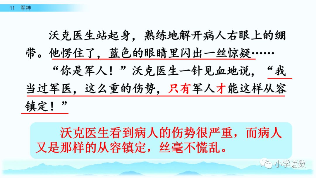 1.这么重的伤势,只有军人才能这样从容镇定! ( )