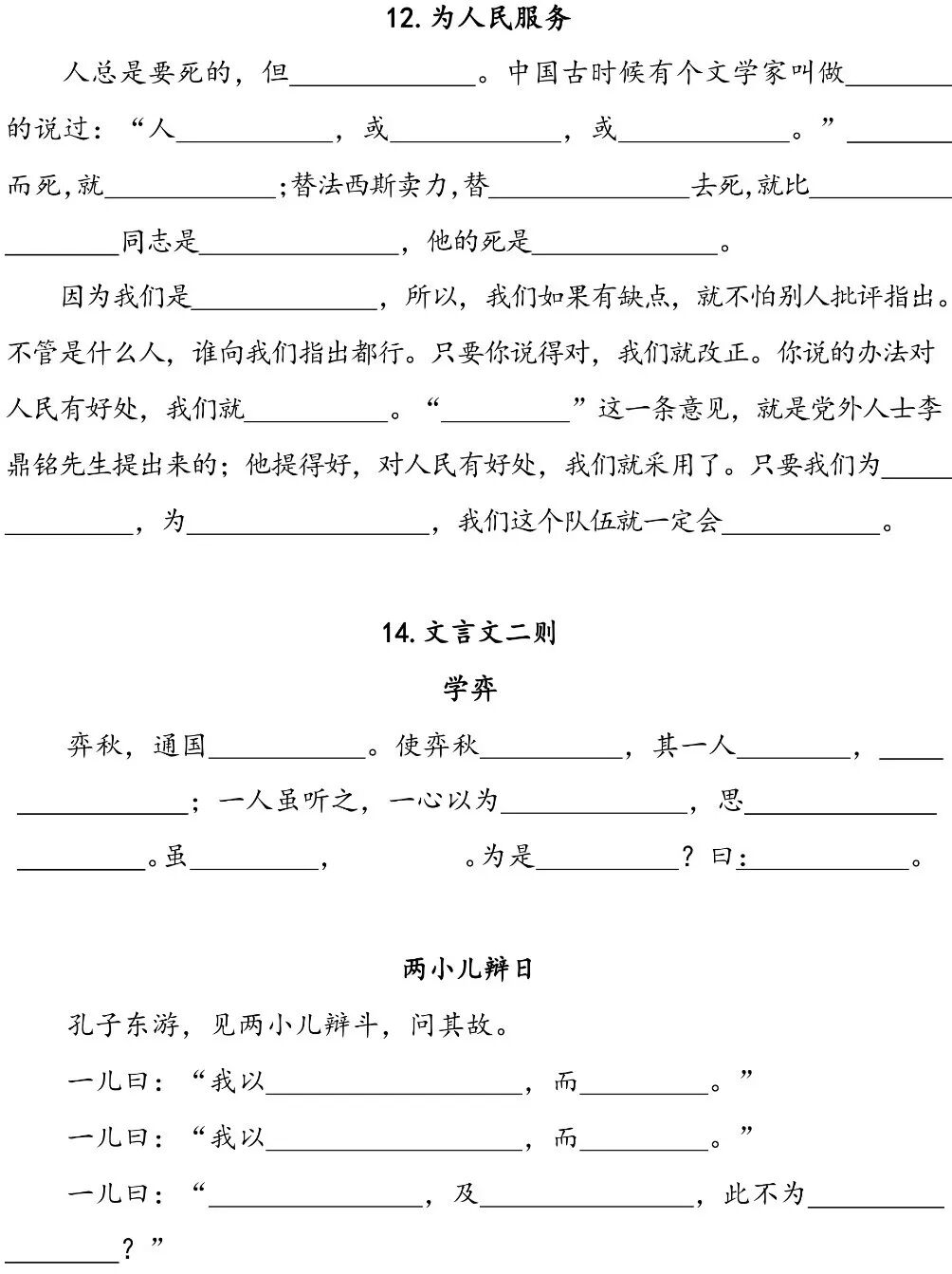 课文内容填空