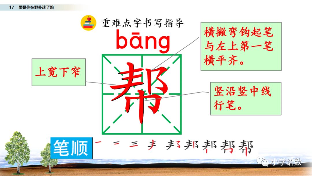“帮忙” 是把大树当成了人来写,表明大树也有指示方向的作用。
