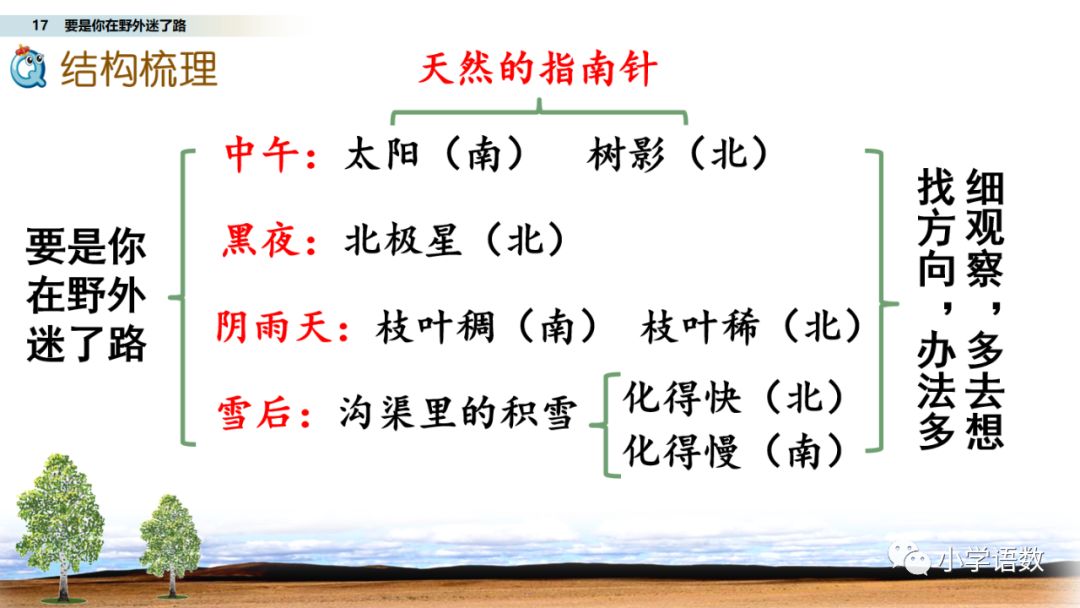 最后一节和第一节首尾呼应, 告诉我们找到天然的指南针的办法:细细观察,多多去想。