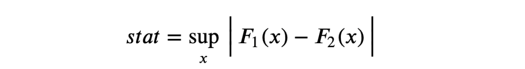 Kolmogorov-Smirnov检验的思想是比较两组的累积分布。特别是,Kolmogorov-Smirnov 检验统计量是两个累积分布之间的最大绝对差。