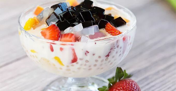 近40款甜品,营养健康。黑糯米、黑珍珠、紫芋圆、红豆、凉粉、西米露,港式甜点的精髓与芒果、草莓、椰汁、榴莲、木瓜、桂圆等优质新鲜的水果完美搭配。