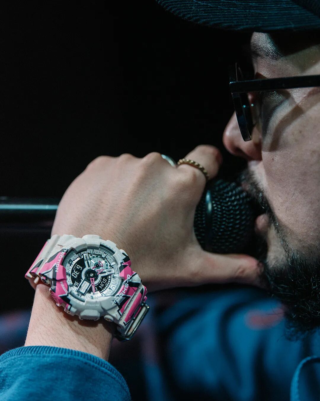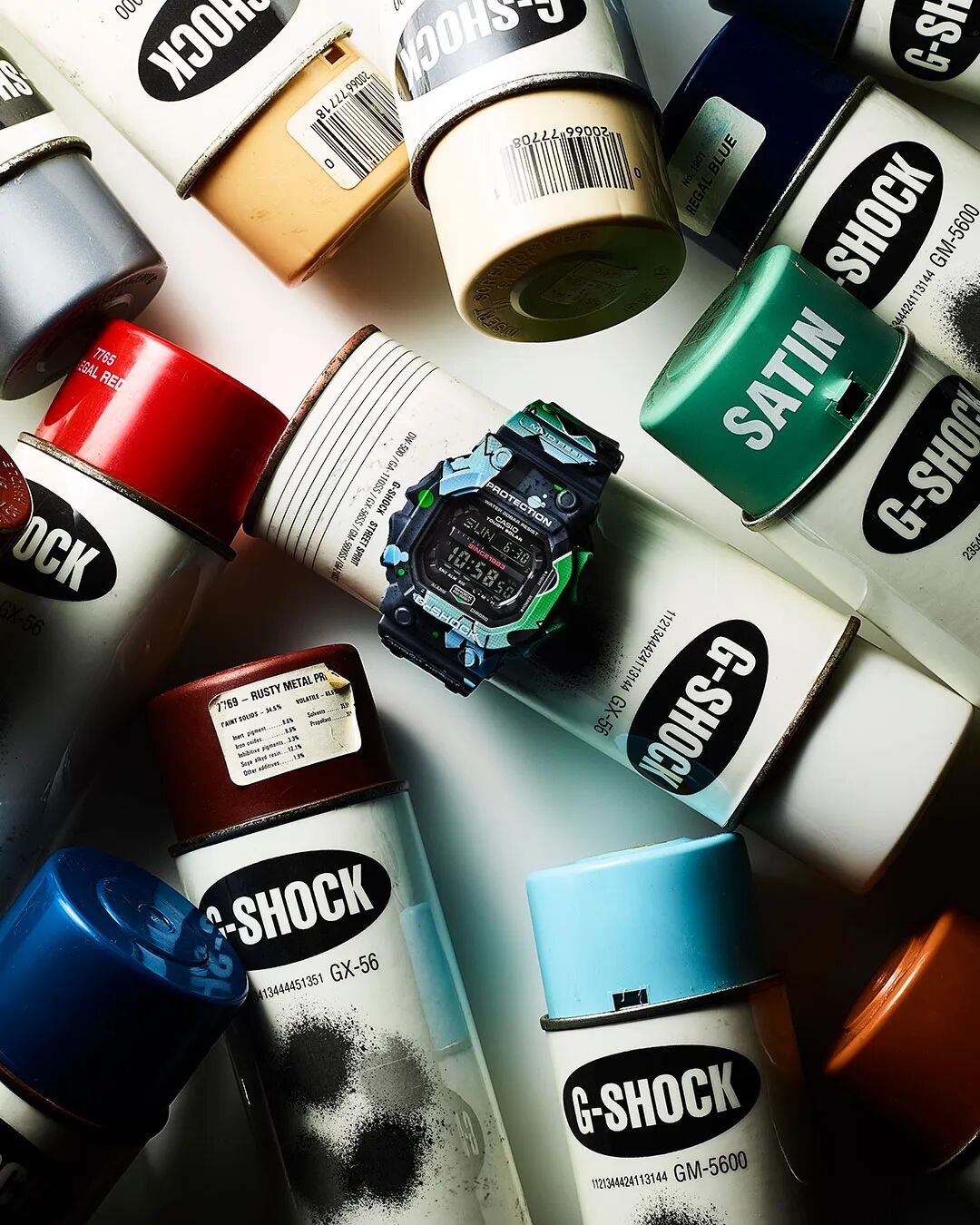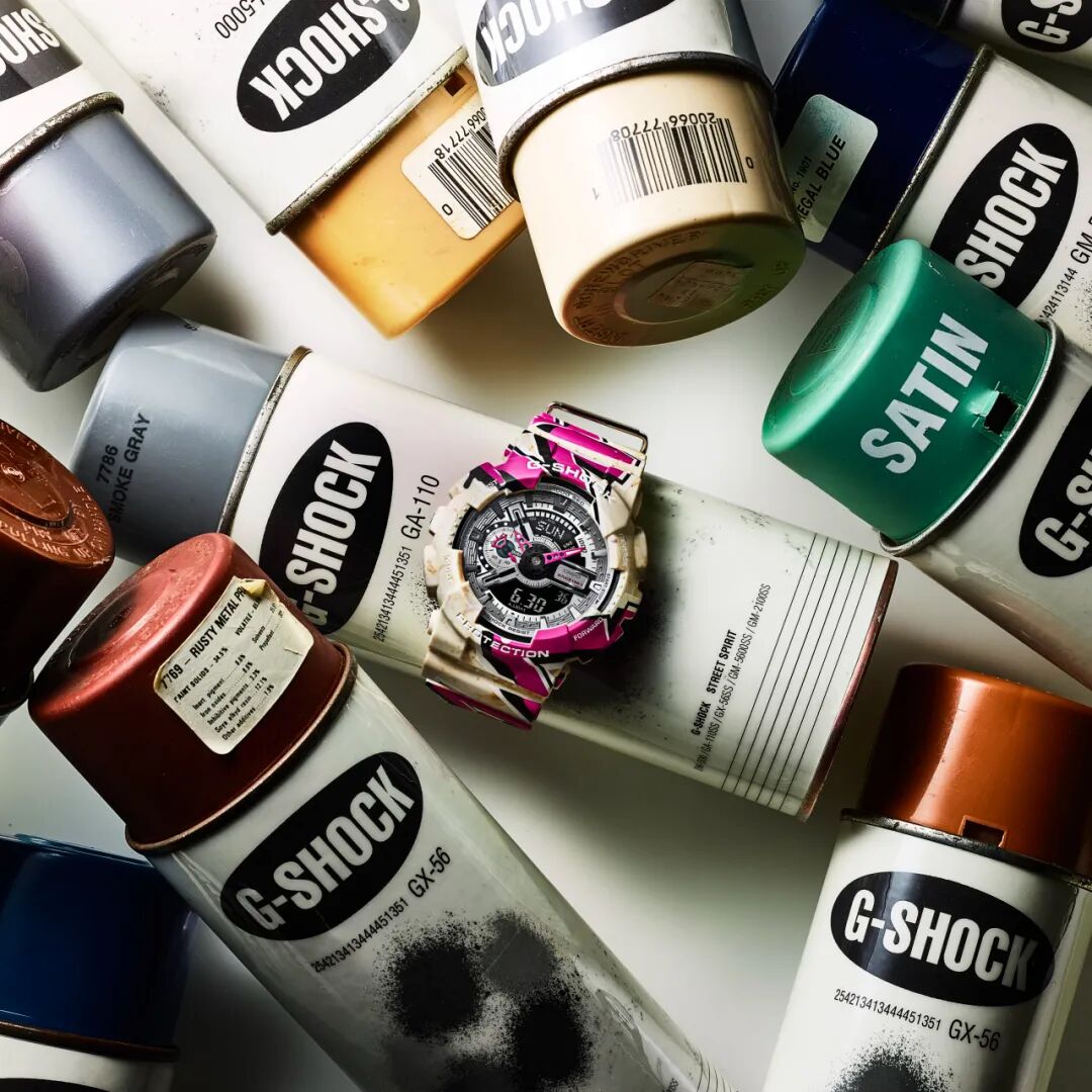 承载着街头精神的 CASIO G-SHOCK 便多次以涂鸦为主题创作系列表款,Keith Haring、FUTURA 2000、INSA、Jahan Loh 等街头涂鸦艺术家均与其合作推出过联名产品。除此之外,G-SHOCK 还将涂鸦中自由表达的街头态度,延伸到其和喷漆与颜料品牌 Montana、KRINK 等的合作中。