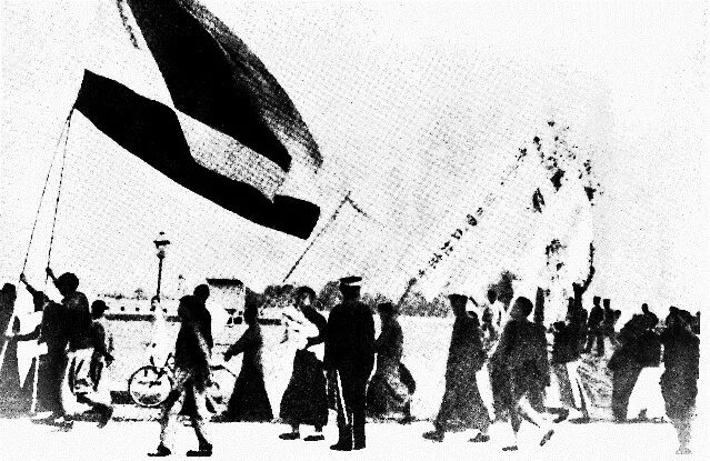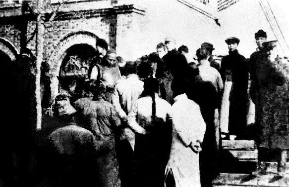 6月5日起,上海的工人阶级举行大罢工,坚决支持五四学生运动。这是上海六万余工人上街示威游行的情景。