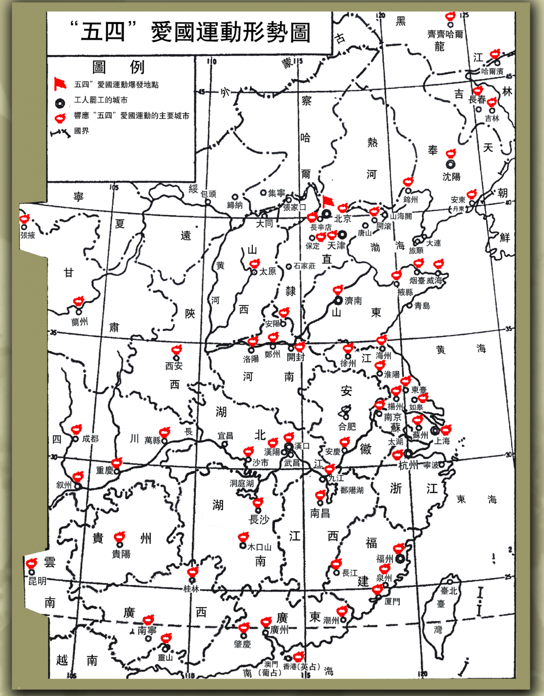 五四爱国运动全国形势示意图,据《五四图史》99年版