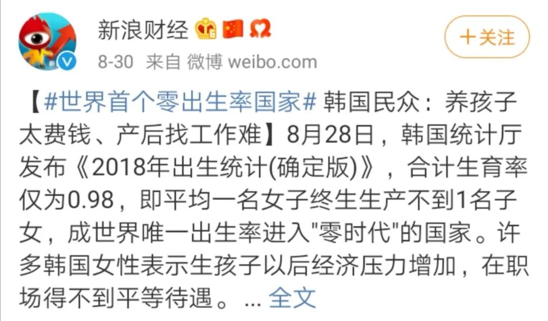 韩国更是严重,成世界唯一出生率进入“零时代”的国家。