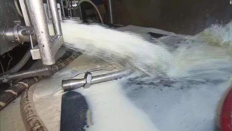 但是 ,在政府的措施实施之前,奶农们还要继续把牛奶倒掉……