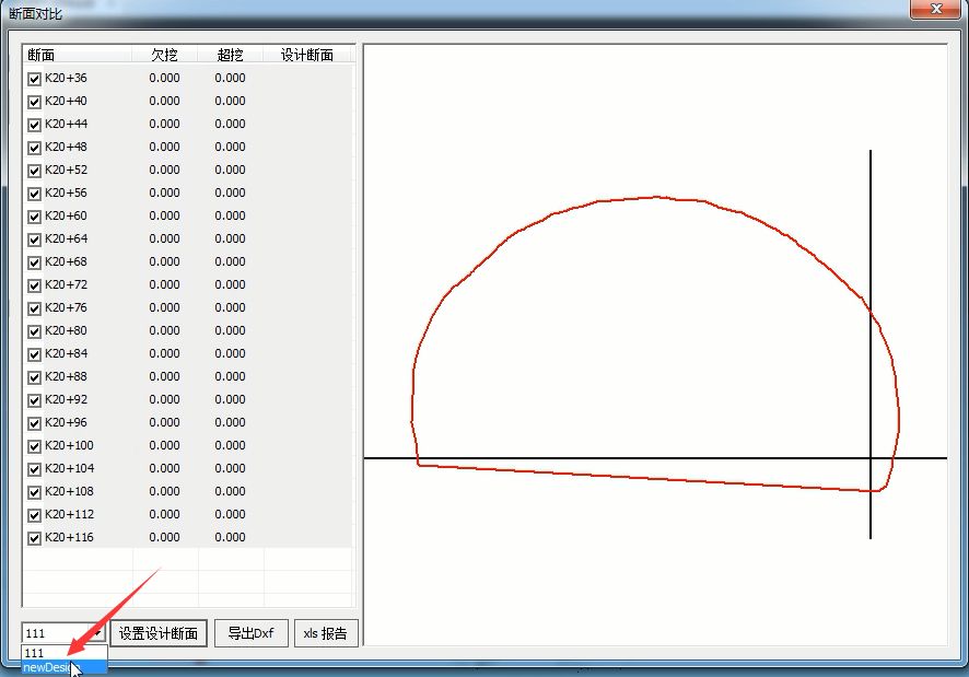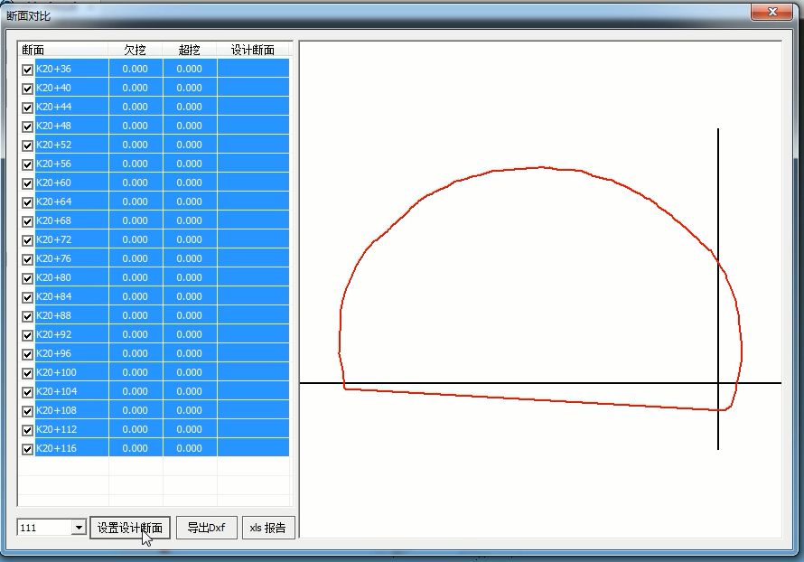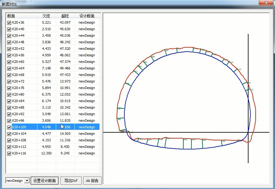 加载施工方给出的设计断面,就可以得出隧道的超欠挖数据