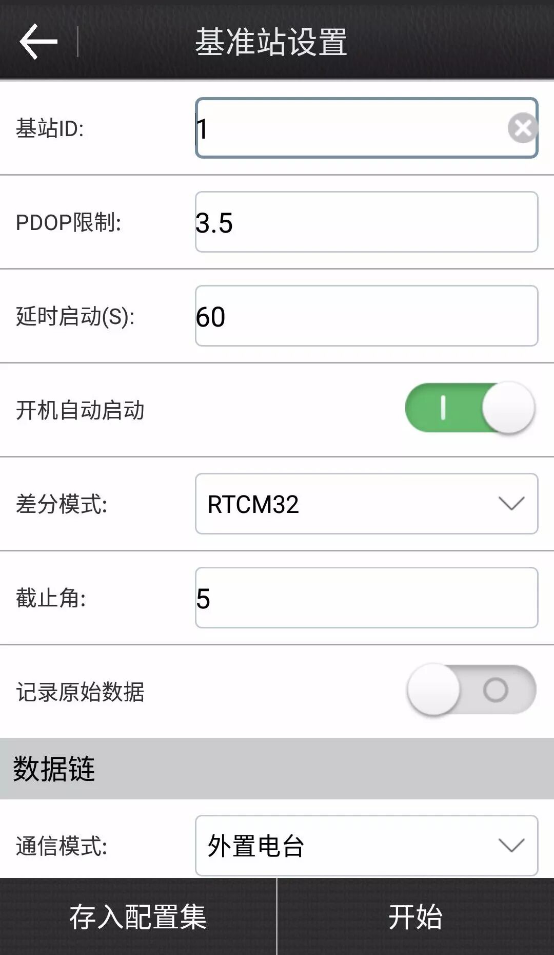 打开SurPad 软件,在通讯设置里通过蓝牙连接基准站机头,然后进入基准站模式设置,按照下图相关内容设置基准站。