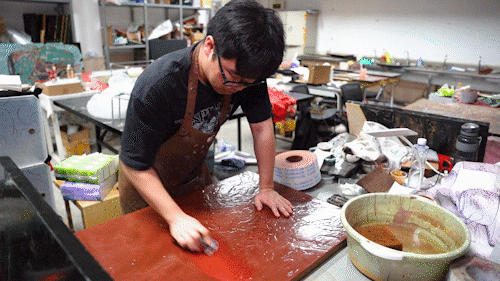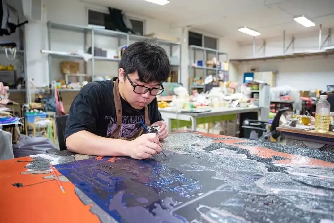 这期间,漆画教研室的老师们和学长学姐们给了王肇兴很多指导和支持,帮助他逐渐掌握漆画。