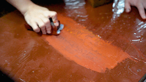 制作漆画的大漆中含有一种名为“漆酚”的成分,大部分人初次接触都会过敏。王肇兴也没能幸免,第一次做漆画时,他的手上、脸上起满了红疹子、鼓起一个个包,痛痒难忍。后来频繁地与大漆接触,身体逐渐适应,过敏反应才渐渐消失。
