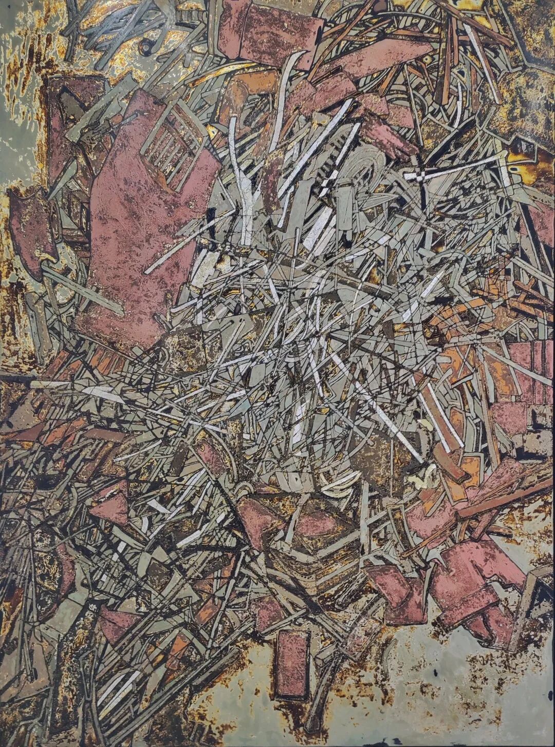 汤志义的课程刷新了王肇兴对漆画的认识。此前,刚接触漆画的王肇兴,只会根据眼中所见来进行创作。他会把看到的一块棉布、一个水果抽象出来,把本来圆润的线条变得平直,把一幅画作用各种手法展现得“花里胡哨”。
