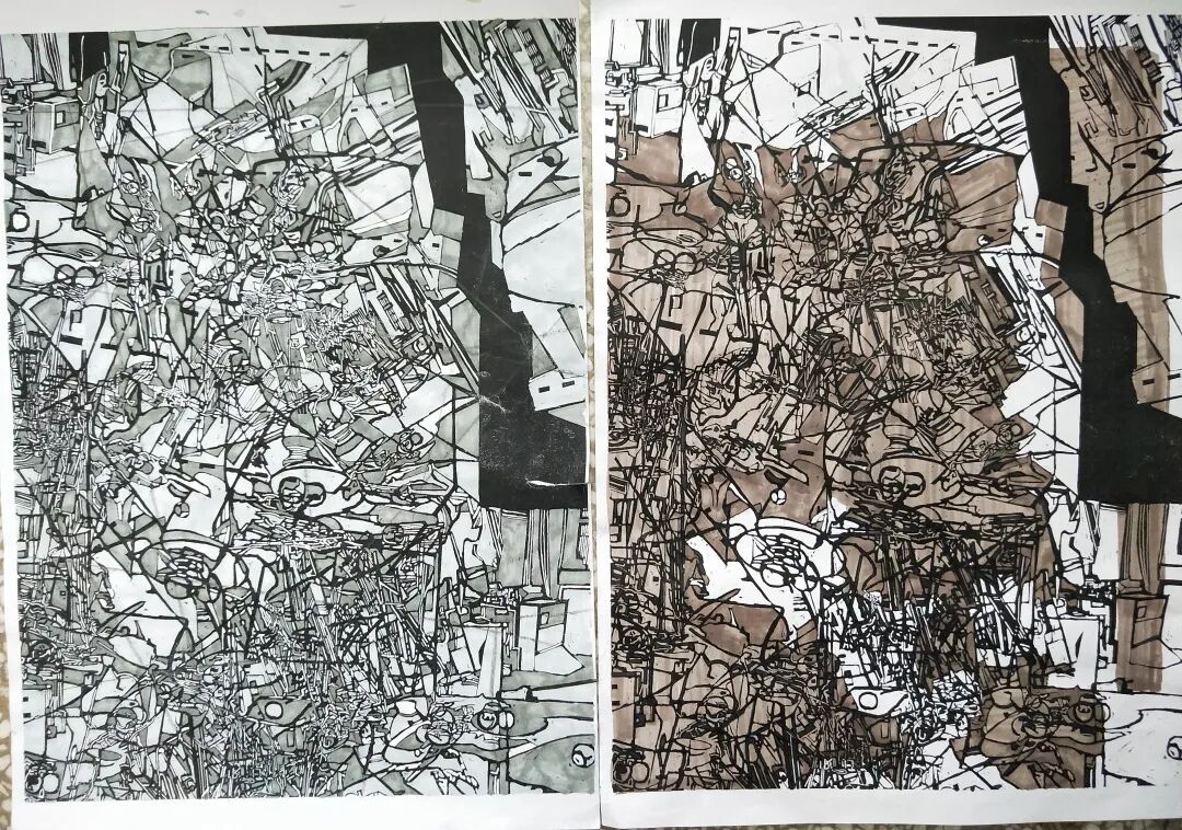 但在汤志义的课上,王肇兴却看到老师用泼墨的方式,写意地在画纸上泼出各种形状,再用这些形状去反映作者的思想,进行加工。