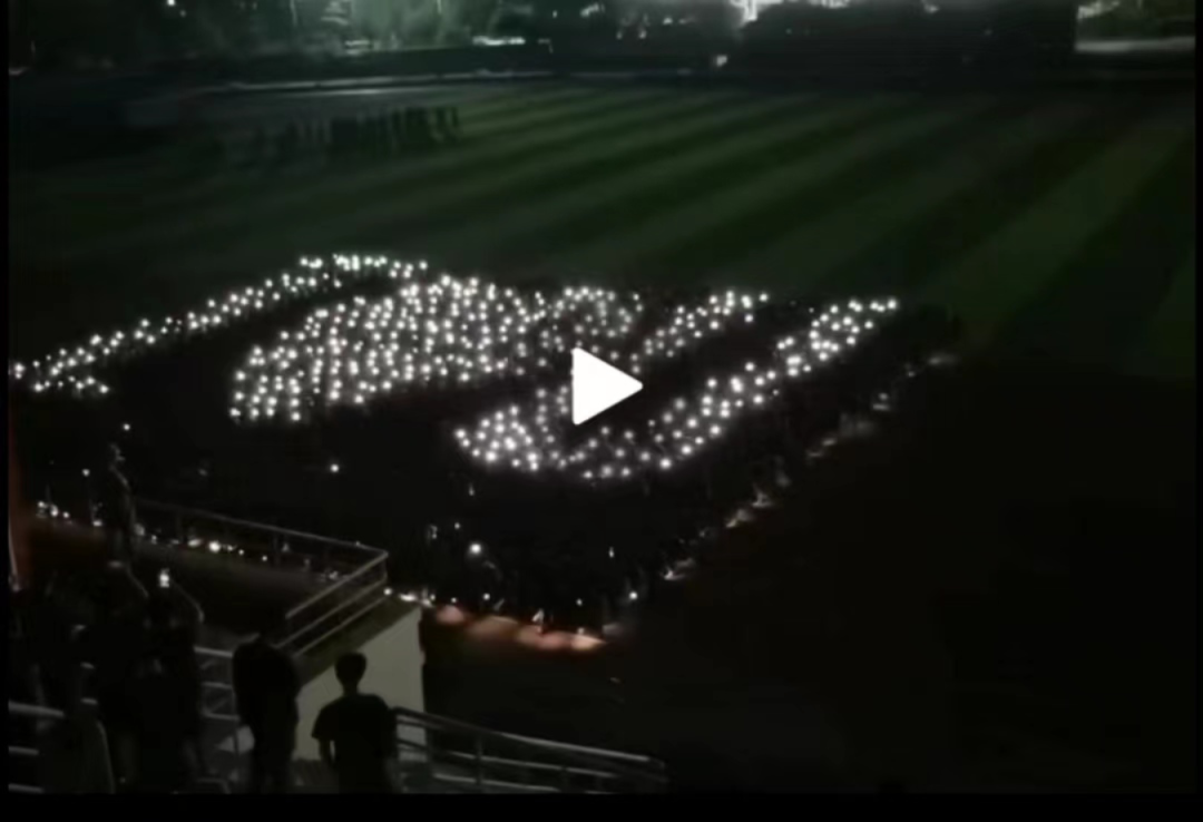 军训的时候,大家的旗语方阵,在夜晚开着闪光灯,如同点点繁星汇在一起,i love you 点亮了操场,也点亮了每个人的心。