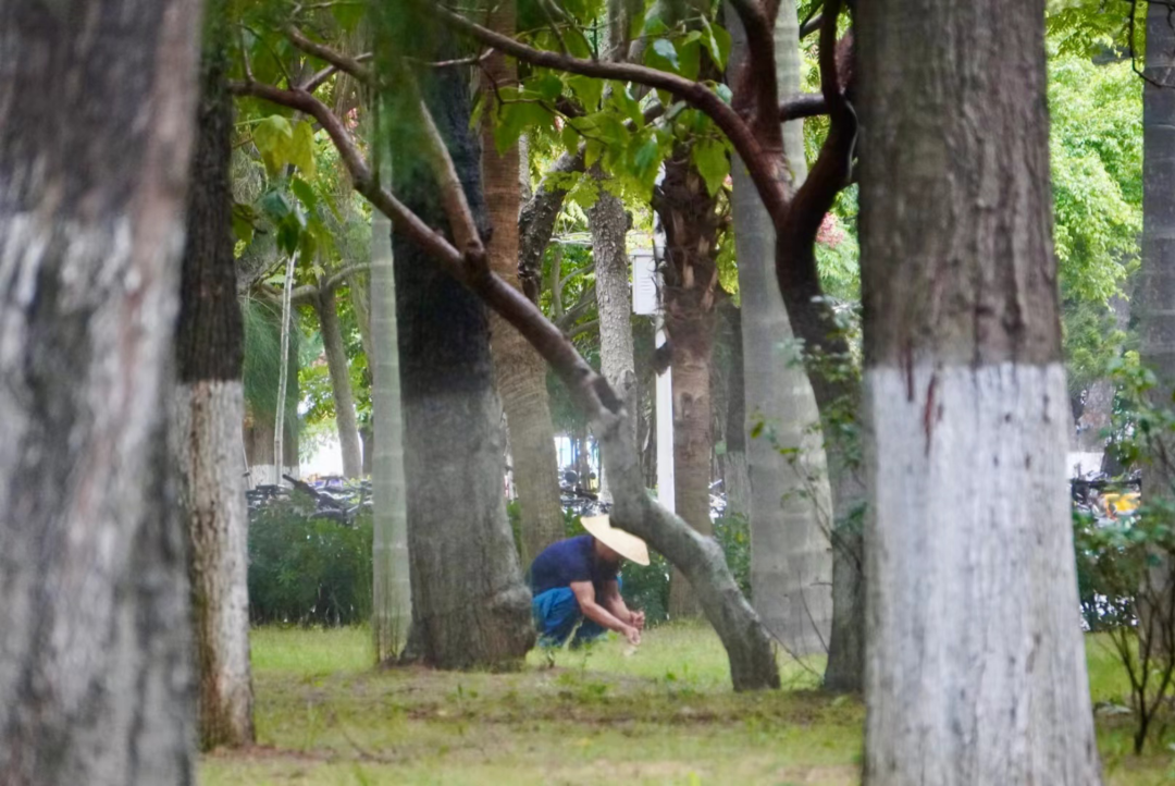 看见后勤的叔叔阿姨提着水桶、扫帚,握着水管,对校园做了一次大清扫,“终于能闻到水与草木的泥土气息了!”阿姨的脸上洋溢着笑容。所谓治愈,大概就是幸福地生活在这些厦大平凡人的保护之下。