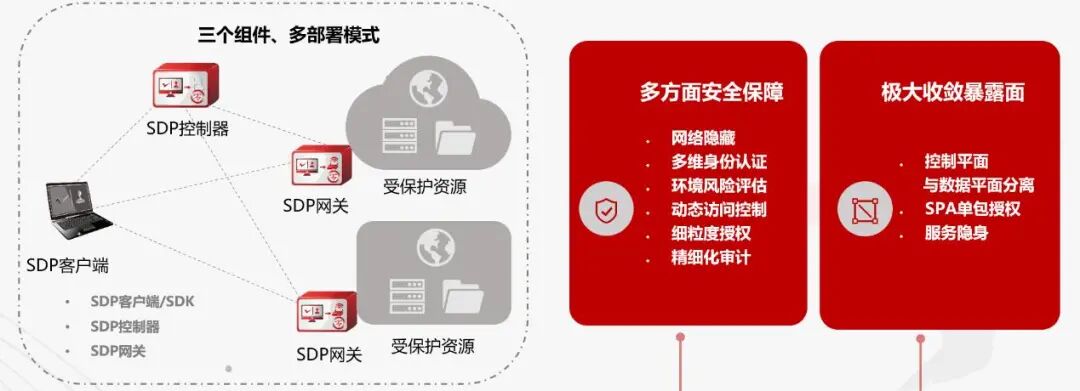 天融信零信任SDP网关,为远程接入客户提供网络隐藏、账号多因子认证、权限动态授予等功能,是打击“假”账号的神兵利器。