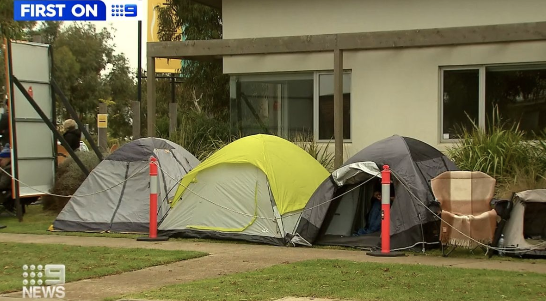在澳洲,为了买到一套房子,购房者连夜搭帐篷抢房。