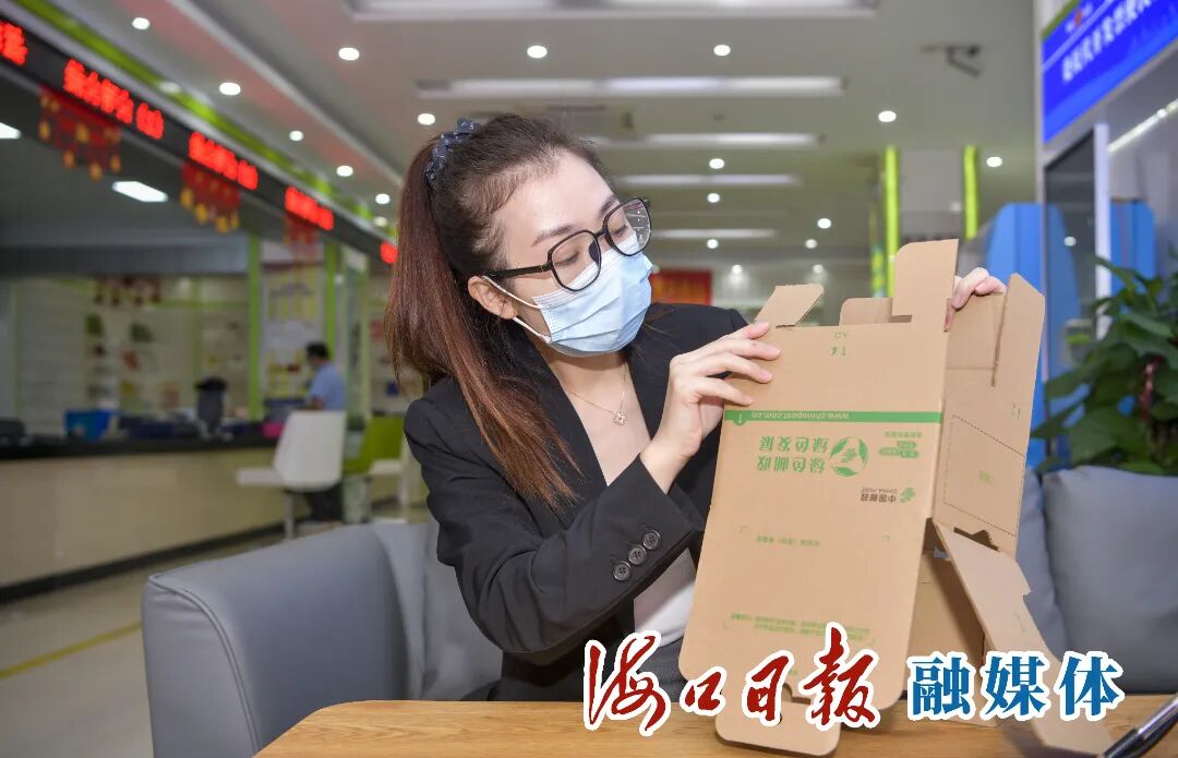 “这是我们目前正在推广的可循环包装箱,比普通的纸箱厚实耐用,可循环使用50次以上。”中国邮政集团有限公司海口市分公司工作人员丁丽芸告诉记者,“这种包装箱目前是由快递小哥同城送货时使用,每个箱子都有一个二维码,可全程跟踪追溯。我们还根据业务需求,近期将推出政务类的寄件包装箱,可邮寄营业执照、企业公章、文件等。”
