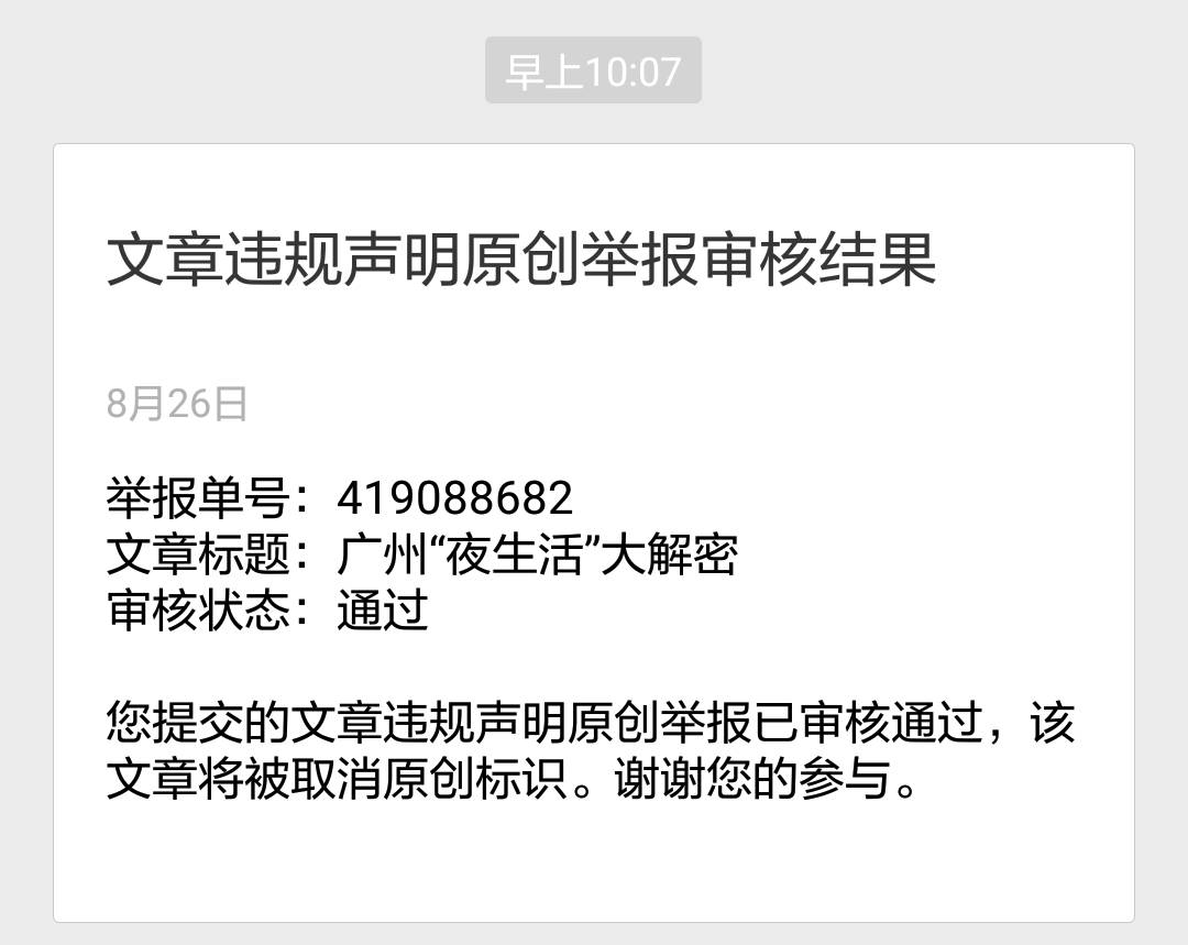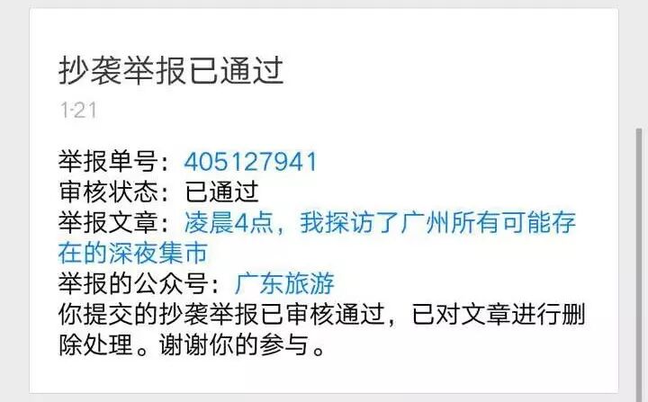 为什么说“又”呢,大家可能不知道的是,我早在一年前我的文章就曾被广东省旅游局的官方公众号,政府官微等使用,都维权成功,也获得了相应地补偿。
