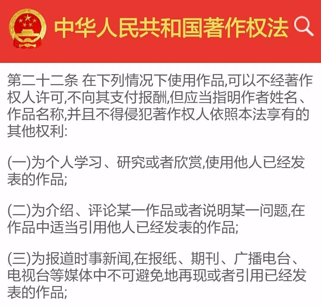 ii.引用不属于抄袭,比如说本文就引用了《著作权法》。